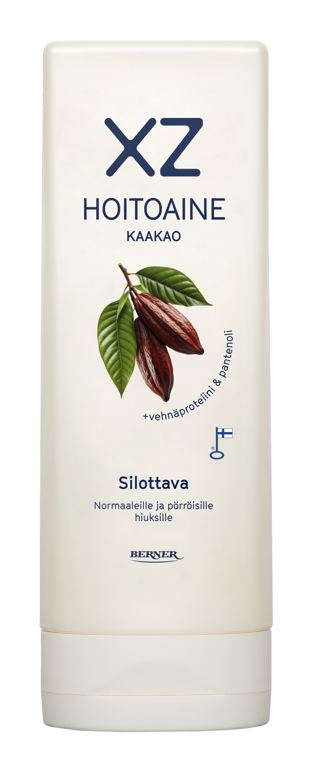 XZ Kaakao hoitoaine normaaleille ja pörröisille hiuksille. Silottava ja pehmentävä koostumus sisältää aitoa kaakaota, pantenolia ja vehnäproteiinia, jotka yhdessä vahvistavat ja suojaavat hiuksia sekä auttavat ehkäisemään hilseen muodostumista. Hoitoaine tekee hiuksista pehmeät ja helposti kammattavat sekä vähentää hiusten sähköisyyttä jättäen hiukset ilmavan tuntuisiksi. Houkuttelevan suklainen tuoksu viimeistelee pesuhetken.