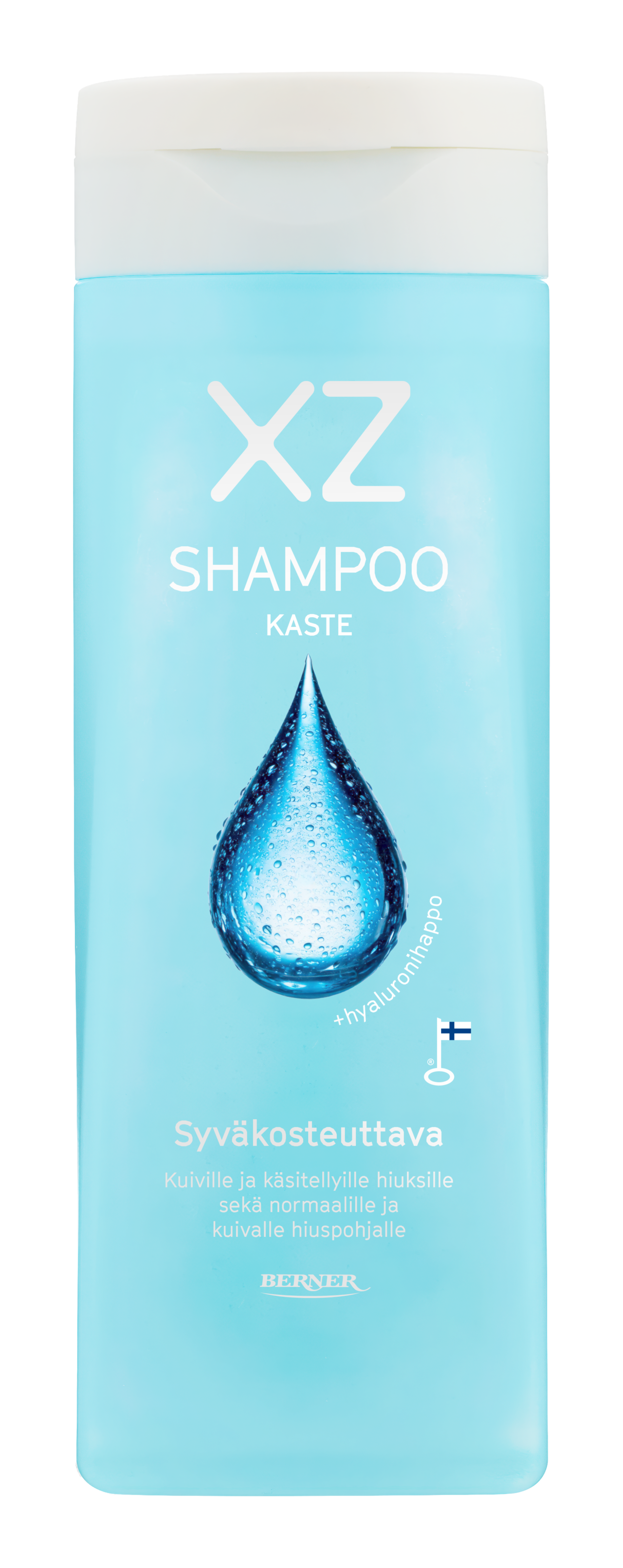 XZ Kaste shampoo kuiville ja käsitellyille hiuksille sekä normaalille ja kuivalle hiuspohjalle. Syväkosteuttava koostumus kosteuttaa tehokkaasti hiuksia sekä hoitaa hiuspohjaa hellävaraisesti. Shampoon sisältämä hyaluronihappo ja kotimaisesta sokerijuurikkaasta saatava betaiini tehostavat hiusten ja hiuspohjan luonnollista kosteustasapainoa, vahvistaen hiuksia ja parantaen hiuspohjan hyvinvointia. Lopputuloksena on pehmeän tuntuiset, hyvinvoivat ja elinvoimaiset hiukset ja hiuspohja. Raikas ja puhdas tuoksu viimeistelee hiustenpesuhetken.