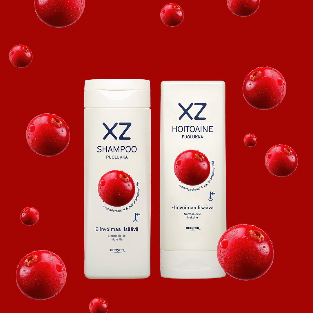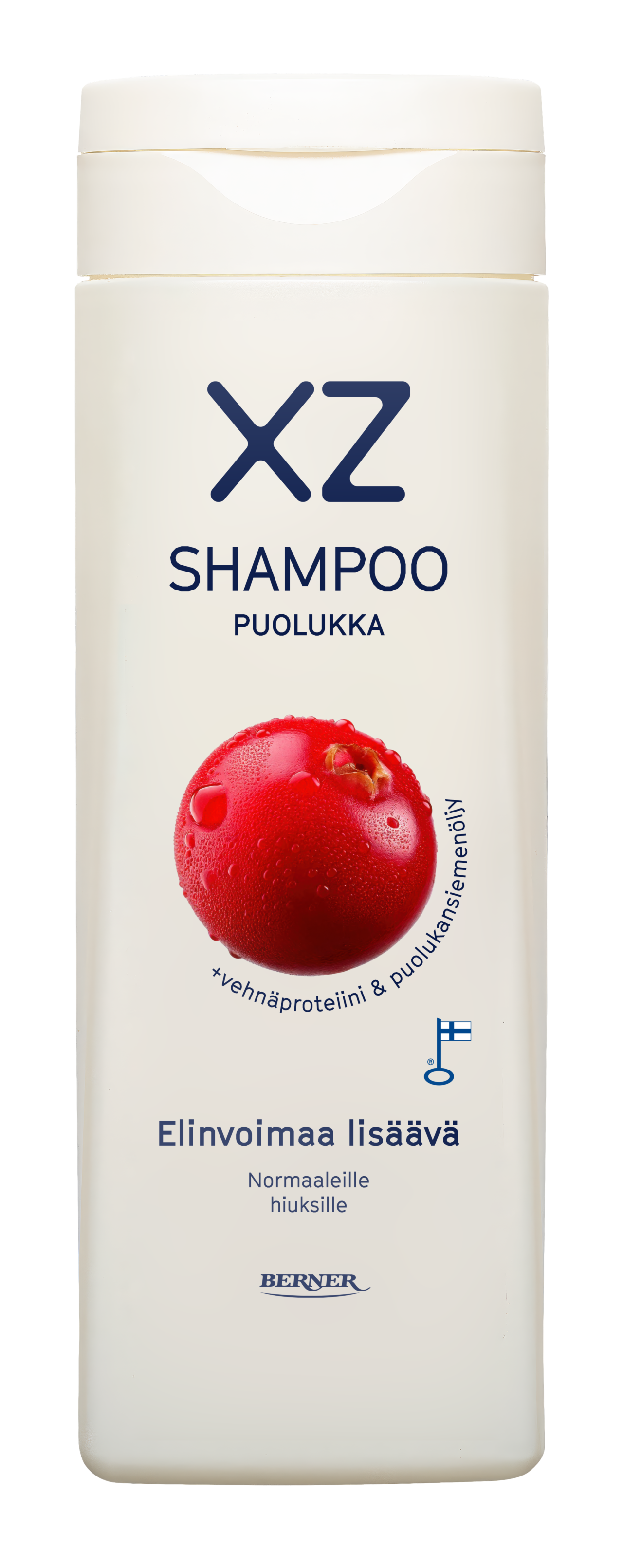 XZ Puolukka shampoo normaaleille hiuksille. Shampoo vahvistaa ja kosteuttaa hiuksia, jättäen ne elinvoimaisiksi ja hyvinvoivan näköisiksi. Pohjoismainen puolukansiemenöljy, vehnäproteiinit ja vitamiinit hoitavat hiuksia juuresta latvaan ja antavat luonnollista kiiltoa. Silikoniton koostumus puhdistaa hiukset ja hiuspohjan hellävaraisesti ilman raskasta tunnetta. Raikas marjainen tuoksu viimeistelee pesuhetken.