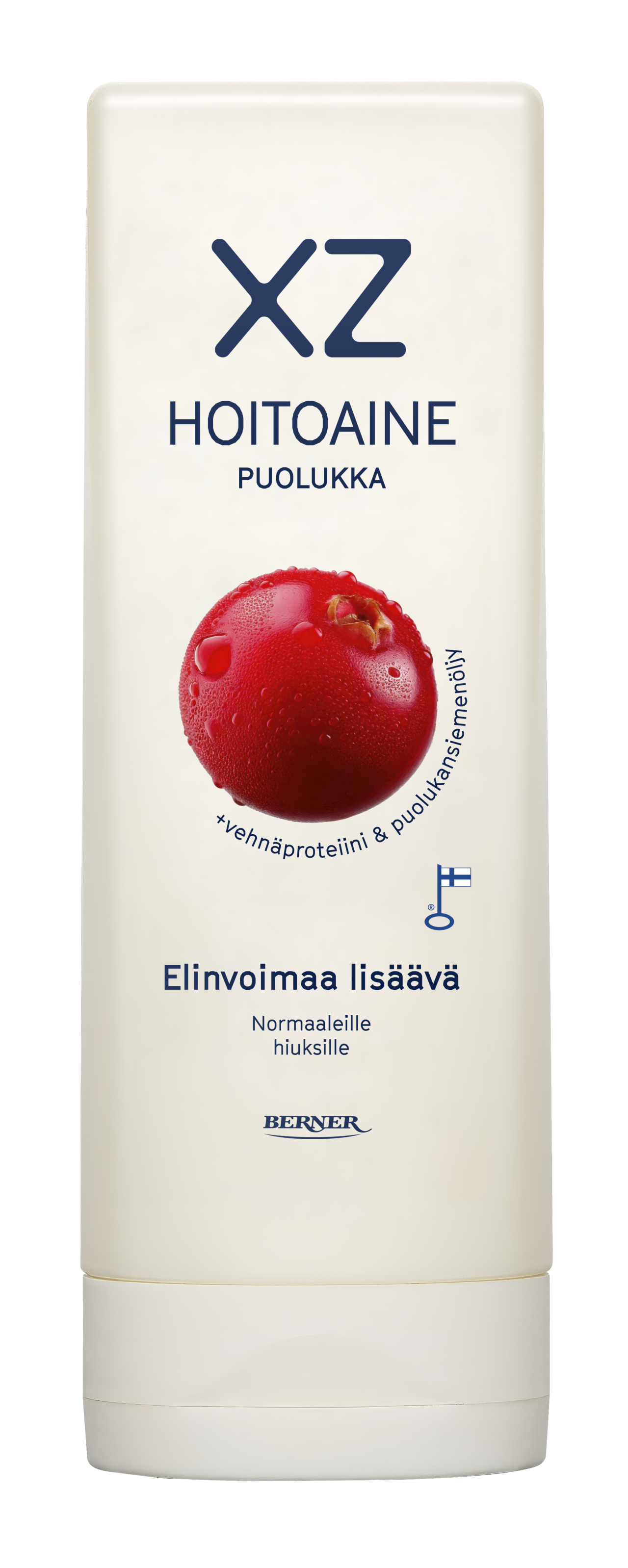 XZ Puolukka hoitoaine normaaleille hiuksille. Elinvoimaa lisäävä hoitoaine vahvistaa ja kosteuttaa hiuksia, tehden niistä pehmeät, kiiltävät ja helposti käsiteltävät. Hoitoaine sisältää vehnäproteiinia, joka auttaa vahvistamaan hiuksia ja tukee niiden rakennetta. Pohjoismainen puolukansiemenöljy hoitaa hiuksia ja antaa niille kiiltoa saaden hiukset näyttämään terveiltä ja hyvinvoivilta. Raikas puolukkainen tuoksu viimeistelee pesuhetken.