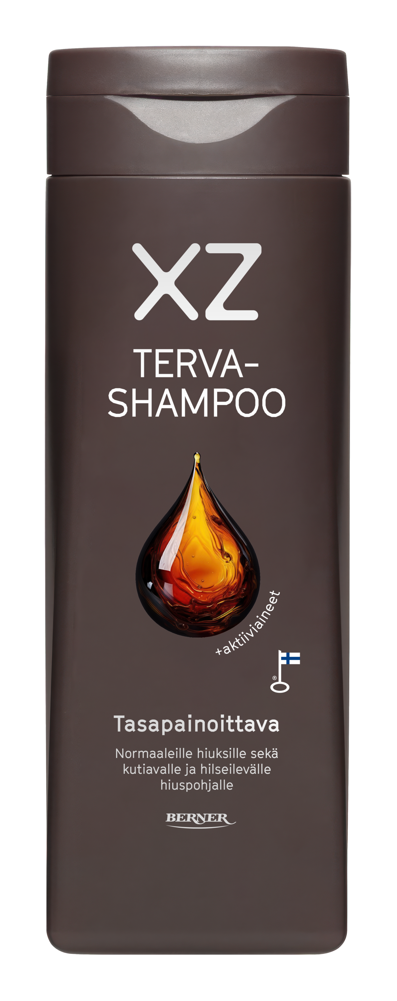 XZ Terva shampoo kutiavalle ja hilseilevälle hiuspohjalle sekä normaaleille hiuksille. Tasapainottava shampoo rauhoittaa kutiavaa hiuspohjaa sekä auttaa vähentämään hilseen muodostumista. Shampoon hoitava koostumus puhdistaa hiuspohjan hellävaraisesti ja jättää sen raikkaan ja tasapainoisen tuntuiseksi. Perinteinen tervan tuoksu hellii aisteja ja viimeistelee hiustenpesuhetken.